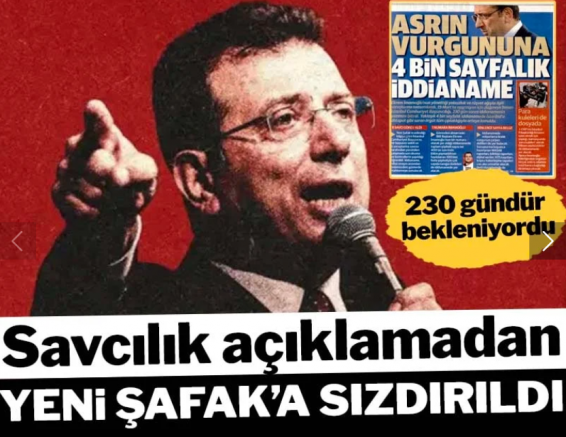 İstanbul Cumhuriyet Başsavcılığı tarafından İstanbul Büyükşehir Belediyesi (İBB) hakkında yürütülen ve henüz kamuoyuna açıklanmamış olan “yolsuzluk” soruşturmasına dair iddianame, iktidara yakınlığıyla bilinen Yeni Şafak gazetesi tarafından yayımlandı.