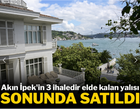 FETÖ'nün finans sorumlusu olan ve 15 Temmuz 2016 tarihli darbe girişiminin ardından Türkiye'deki mal varlıklarına el konulan firari Akın İpek'a ait İstanbul Boğazı'ndaki 'Beyaz Köşk', 115 milyon TL indirimli ihale ile nihayet satılabildi.