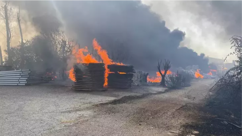 İhbarla bölgeye çok sayıda itfaiye ekibi sevk edildi. Yangını fark eden vatandaşlar ilk müdahaleyi yapmaya çalışırken, alevler rüzgarın etkisiyle hızla yayıldı. Alevler, mezarlığa yakın noktadaki mobilya fabrikasına sıçradı. Fabrikanın bahçesinde bulunan ahşap malzemeler ile ürünler yanarken, ekiplerin yangına müdahalesi sürüyor.
