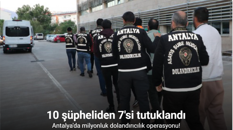 Antalya Emniyet müdürlüğü Asayiş Şube Müdürlüğü’ne müracaat edip müracaatta bulunan M.A. ve eşi H.A. isimli müştekiler tanımadığı bir kişi tarafından arandığını, arayan kişinin telefonda kendisini polis olarak tanıttığını söyledi. Baskı altındaki yönlendirmelerle Kumluca ilçesinde sattırdıkları 2 dairenin parasını ve evde bulunan 235 gram külçe altın ile 8 adet çeyrek altın olmak üzere yaklaşık 10 Milyon TL paranın bir kısmını ikametine gelen şahsa elden teslim ettiğini söyleyen müştekiler bir kısmını ise şüphelilerin verdiği hesaplara gönderdiğini belirterek şikayetçi oldu. İhbarın ardından başlatılan projeli çalışmada Asayiş Şube Müdürlüğüne müracaatta bulunan A.B. isimli müştekinin de telefonda kendisini polis olarak tanıtan şahısların verdiği hesaplara 110 Bin TL para gönderdiğini beyan ederek şikayetçi olması üzerine, "Nitelikli Dolandırıcılık" olayını da aynı şüpheli şahısların gerçekleştirdiği tespit edildi. Şüphelilerin yakalanmasına yönelik Antalya merkezli 6 ilde düzenlenen eş zamanlı operasyonda 10 şüpheli yakalandı.