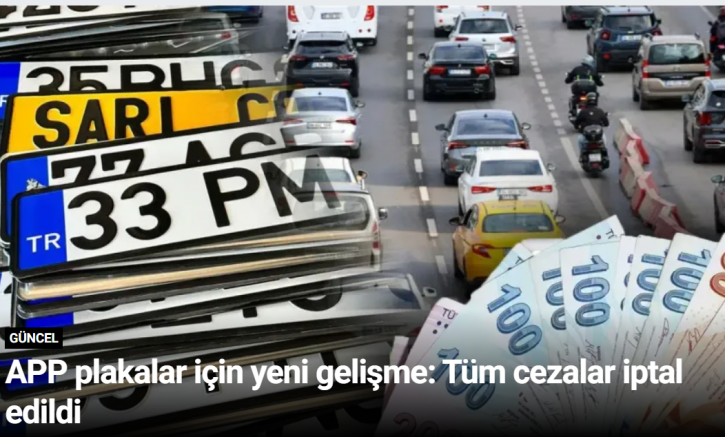 Son günlerde tartışmalara neden olan standart dışı plakalara (APP) ilişkin yeni bir karar alındı. İçişleri Bakanı Mustafa Çiftçi’nin talimatıyla, 27 Şubat tarihinden itibaren APP plakalar nedeniyle kesilen idari para cezalarının iptal edildiği bildirildi.