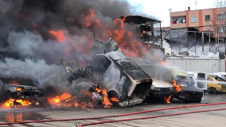 Bursa Osmangazi ilçesi Fatih Mahallesi'nde hurda araçlardan parça sökülerek ticaretinin yapıldığı çıkmaca" dükkanında henüz belirlenemeyen nedenle yangın çıktı. Yükselen dumanın kentin büyük bölümünden görülebildiği olay yerine çok sayıda itfaiye ve polis ekibi sevk edildi. İtfaiye ekipleri, iş yerinde ve önündeki 10'a yakın hurda araçta etkili olan yangına müdahale etti. Polisler de çevrede güvenlik önlemi aldı. Yaklaşık 10 itfaiye aracıyla alevlere müdahalede bulunan ekipler, bir saatlik çalışmanın ardından yangını söndürerek soğutma çalışması .yaptı.