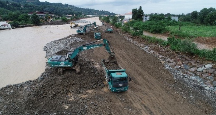 Artvin'in Arhavi ilçesinde geçtiğimiz 22 Temmuz tarihinde aşırı yağışlar sonrası taşan Kabisre Deresi'nde taşkın önlemleri alınmaya devam ediliyor.