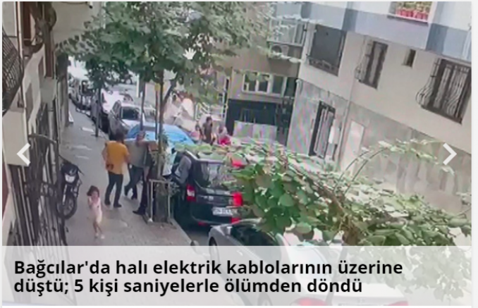 Olay geçen pazartesi saat 12.00 sıralarında Kemalpaşa Mahallesi'nde meydana geldi. İddiaya göre, Emine Onat ve Sümeyye Güven çocuklarını okula kayıt yaptırdıktan sonra alışveriş yapmak için pazara doğru yola çıktı. Sokaktan geçtikleri sırada, bir apartmanın üst katından halı düştü. Halı önce elektrik kablolarına çarptı, ardından sokağın ortasına düştü. Koparak yere düşen elektrik kabloları da etrafa kıvılcımlar saçtı. O sırada sokakta yürüyen Emine Onat ve Sümeyye Güven ile 3 çocuğu korku dolu anlar yaşadı.