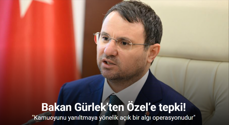 Adalet Bakanı Akın Gürlek, X hesabından yaptığı açıklamada, Özgür Özel’in kendisine yönelik iddialarını "herhangi bir delile dayanmayan açık bir algı operasyonu" olarak nitelendirdi.