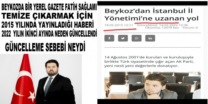 Ajansımızın linklere tıkladığımızda.https://www.izcihaberajansi.com/beykoz-halki-beykoz-belediyesinden-acil-aciklama-bekliyor/28794/ okunduğu şekilde 2012 yılında Fethullah Gülene övgüler söyleyen kişidir o yıllar. Beykoz AKP gençlik kolları başkanlığı yapmaktaydı 2015 yılında Beykoz ‘un bir yerel gazetesinde Fethullah Gülene övgülerin yapıldığı ajansımız 2022 yılında Fatih Sağlamın Fethullah Gülenle ilgili yayınladığımız haberden sonra ve sosyal medyalarda ve bazı gazetelerde de yayınladıktan sonra Beykoz’da bir yerel gazete 2015 yılında fatih sağlamla ilgili yapmış haberi haberin içerikliğinde fetullah gülenle ilgili övgülerin olduğu bu yerel gazete 2025 yılında yayınladığı haberinin içerikliğini değiştirdiğini haberimizdeki linkte. https://www.izcihaberajansi.com/beykoz-da-bir-gazete-fatih-saglam-in-gecmisinin-guncelledi/28838/ Okunduğu şekilde yayınlamış olduğu bu haberi 2022 yılın ikinci ayda güncellemesi Fatih Sağlamı temize çıkarmaya çalışmıştır. Bu yerel gazete neden 7 yıl sonra bu haberi güncelledi bu etik değildir.