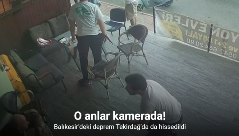 Balıkesir’de meydana gelen 6.1’lik deprem Tekirdağ’da da şiddetli şekilde hissedildi. Sarsıntı ile panik yaşayan vatandaşlar, kendilerini hızla dışarı attı. Sokaklarda kısa süreli yoğunluk yaşanırken, deprem anı güvenlik kameralarına yansıdı. Kameralarda depremin başladığı anda masalarda oturan vatandaşların yerlerinden fırladığı, bazı kişilerin koşarak açık alanlara yöneldiği görüldü.