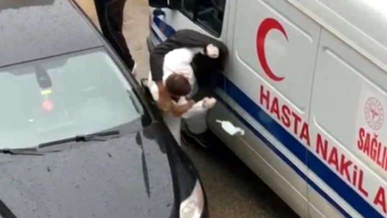 Otomobil sürücüsü ve yanındaki şahıs, ambulans şoförü Başbay'ı ambulanstan indirerek darbetti. Ambulans şoförünü darbettiği sırada gelenlere ve ambulans şoförüne "Ben polisim" diye bağıran şahsın, emlakçı olduğu öğrenildi.