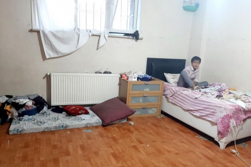 Suriye’deki savaştan kaçıp 7 yıl önce Türkiye’ye yerleşen ve İkitelli’de yaşayan bir ailenin evine konuk oluyoruz. 2 göz odada anne ve dokuz çocuğu hayata tutunmaya çalışıyor. Suriyeli oldukları için sürekli aşağılama ile karşı karşıya kaldıklarını söyleyen anne, “İnsan yerine konmuyoruz” diyor. 4 çocuğu ve kendisinin çalıştığını aktaran çocukların annesi, “Eve giren maaşları topladığımızda bir kişinin aldığı maaş etmiyor. Yaşam mı bu?” diye soruyor.