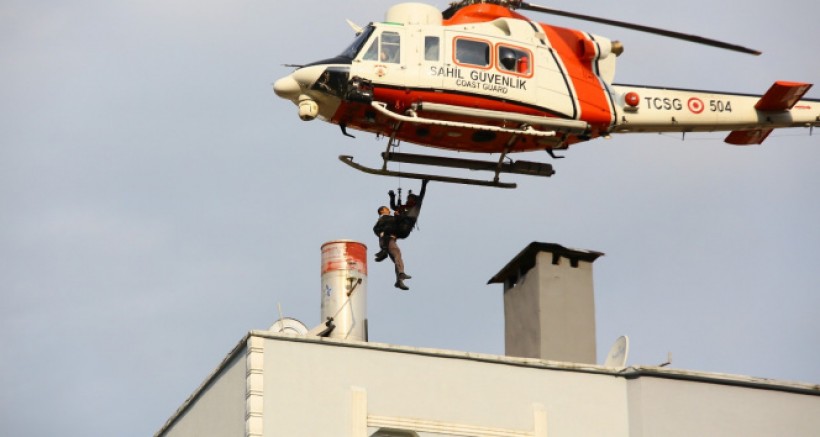 Sel sebebi ile binalarda mahsur kalan vatandaşlar helikopterlerle kurtarıldı. Karadan da ekipler kurtarma çalışması yapıyor.