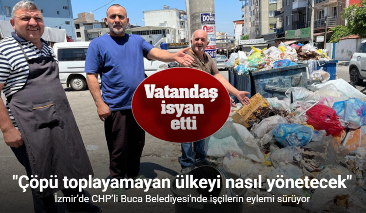 İzmir’in CHP’li Buca Belediyesi’nde maaş ve yan ödemelerini alamayan işçilerin başlattığı iş bırakma eyleminin üçüncü gününde ilçe adeta çöplüğe döndü. Sokaklar, caddeler, parklar çöp yığınlarıyla kaplanırken, sıcak hava nedeniyle etrafa yayılan ağır koku vatandaşları isyan ettirdi. Çocuk parklar, caddeler ve sokaklar çöple dolup taşarken, işe gitmek için çöp yığınlarının arasından geçmek zorunda kalan bir vatandaş, ""Çöpleri toplayamayanlar ülkeyi nasıl yönetecekler" diye tepki gösterdi.