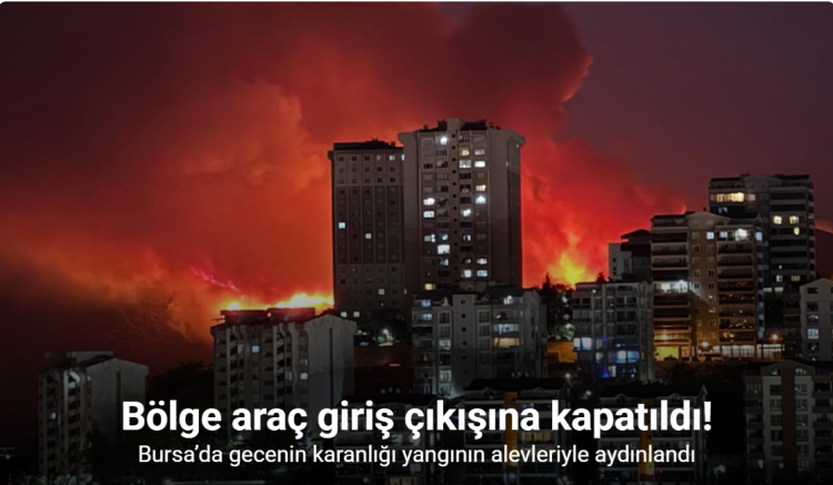 Bursa’nın Kestel ve Gürsu ilçeleri arasındaki ormanlık alanda başlayan yangın etkisini arttırarak devam ediyor. Yangına çok sayıda arazöz, itfaiye aracı ve TOMA karadan müdahale ederken, çok sayıda vatandaş ile personel söndürme çalışmalarına destek veriyor. Ayrıca, karayoluna ulaşan yangın bölgesine araç giriş çıkışı da kapatıldı.
