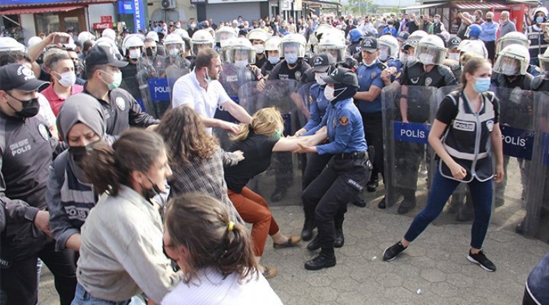 Hopa Meydanı’nda buluşup ÇAYKUR Hopa Çay Fabrikası’na yürümek isteyen üreticilerin önü polis tarafından kesildi. Üreticilerin yürüyüşe geçmesi üzerine polis, kitleye biber gazı ile müdahale etti. Polisin şiddet uyguladığı en az 46 çay üreticisi gözaltına alındı. Bunun ardından polis müdahalesini protesto eden çay üreticileri, meydanda eylemlerini sürdürdü. Çay üreticileri, kontenjanın 30 kilogramdan başlayarak, kademeli olarak kaldırılmasını talep etti. Çay üreticileri, sık sık “Polis defol, bu memleket bizim” sloganları attı. Polis müdahalesi sırasında baygınlık geçiren 3 kişi de hastaneye kaldırıldı.