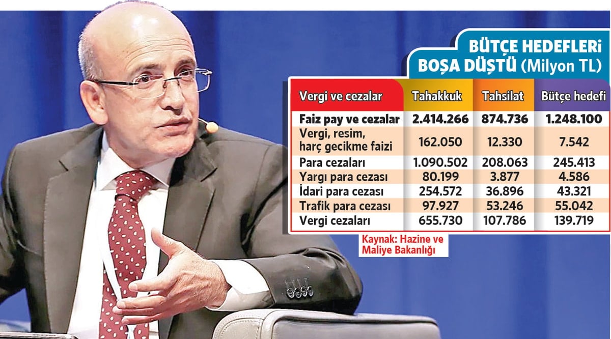 Diğer yandan bütçe gelirlerinin yüzde 20’sine karşılık gelen kısmı faiz, pay ve cezalar kaleminden oluştu. Bu kalemde bütçe başlangıcında 1.2 trilyon liralık gelir hedefi varken, 10 aylık dönemde bunun iki katı kadar, 2.4 trilyon liralık tahakkuk oluştu. Bütçenin para cezası kalemi de ekim ayı sonu itibarıyla 1 trilyon 90 milyar liraya ulaştı. Para cezalarında tahakkuk, 2026 bütçe beklentisinin yüzde 444’ü seviyesine ulaşırken, tahsilat ise 208 milyar lirada kaldı.