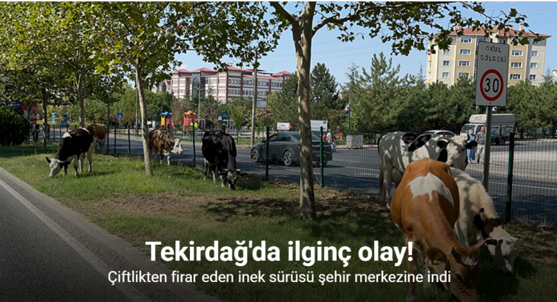 Çorlu ilçesi kırsalında bulunan bir çiftlikten kaçan 8 inek, Zafer Mahallesi Cumhuriyet Bulvarı’nda ortaya çıktı. Trafiği tehlikeye atan inekler, refüje çıkarak otladı. Vatandaşların şaşkın bakışları arasında yeşil otların arasında yatıp dinlenen inekler ilgi odağı oldu. İhbar üzerine bölgeye gelen İlçe Trafik Büro ekibi, kaza riskine karşı trafik güvenliğini sağladı. Polisin telefonla ulaştığı hayvanların sahibi, koruma bekçisinin de yardımıyla 8 ineğini alarak çiftliğe geri götürdü.