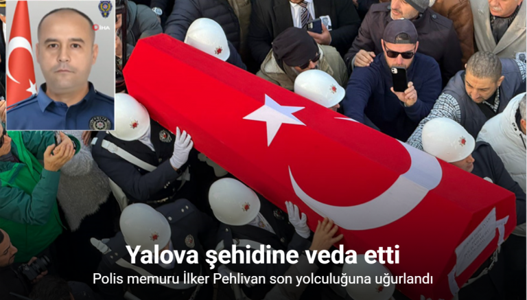 Yalova’da dün gece DEAŞ operasyonunda şehit düşen İlker Pehlivan için Yalova Merkez Camii’nde öğlen namazına müteakip cenaze namazı kılındı. Cenazede şehidin amcası ve kardeşleri taziyeleri kabul etti. Cenaze törenine katılan binlerce vatandaş ’Şehitler ölmez, vatan bölünmez’ sloganları attı. Evli 15, 12 ve 5 yaşlarında 3 çocuk sahibi olan Pehlivan’ın cenazesi daha sonra Yalova Polis Şehitliği’nde defnedildi.