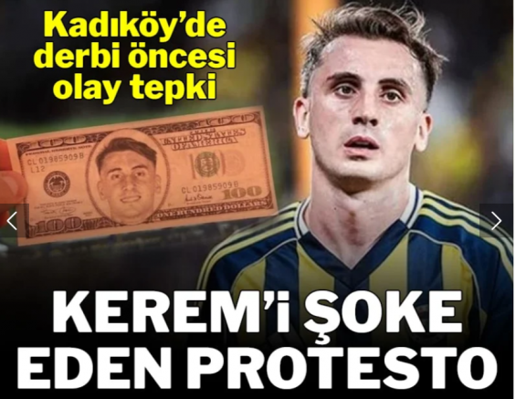 Sarı-kırmızılı taraftarlar, derbi için Kerem Aktürkoğlu'nun fotoğrafının bulunduğu dolarlar bastırdı.