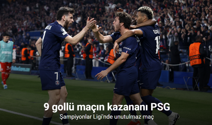 UEFA Şampiyonlar Ligi yarı finalinde 9 golün atıldığı maçta Paris Saint-Germain,..