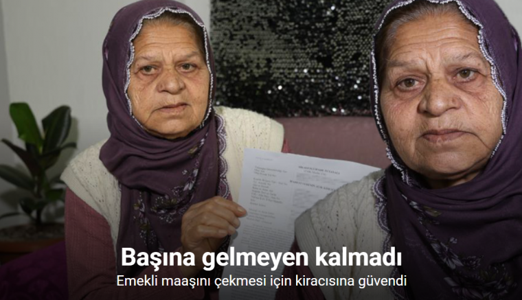 Yaşadıklarını İHA muhabirine anlatan Şenel Karabulut, kiracılarının kendisini dolandırdığını öne sürerek, "Kiracı 5 ay oturdu. Bu süre içinde bana bu hırsızlığı yaptılar. Emekli maaşımı çekmek istediler, hatta bu evi de elimden alacaklardı. Okuma yazmam da yok. 'Bankaya gidelim, maaşını çekelim' dediler, ben de güvenip gittim. O sırada bütün bilgilerimi aldılar, cep telefonumu da 'güncelleyelim' diyerek alıp işlem yaptılar" dedi.