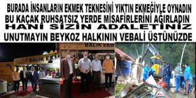 BURASIDA AK PARTİLİ BEYKOZ BELEDİYESİ MECLİS ÜYESİ OLAN FURKAN ÇELİKERİN RUHSATSIZ KAÇAK İŞLETMESİ HADİ MURAT AYDIN BEYKOZ HALKININ EKMEĞİYLE OYNADIN HERGÜN YIKIM YIKIM HADİ BURAYIDA YIKTA GÖRELİM YIKAMASIN SENDE BURAYI KIKAÇAK BURANIN İŞLETMESİNE SON VEREÇEK YÜREK ÇESARET YOK EYER ADALETİN DENKSE YIKTA GÖRELİM SİZİN ADALETİNİZ KENDİ YANDAŞLARINIZA KENDİ ADAMLARINIZA.