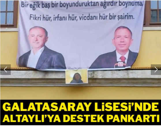 Galatasaraylılar Derneği tarafından düzenlenen Geleneksel Kış Pilav Günü’nde tutuklu gazeteci Fatih Altaylı ve Can Holding soruşturmasında tutuklanan eski Bilgi Üniversitesi Rektörü ve 'Hür ve Kabul Edilmiş Masonlar Derneği Büyük Üstadı' Remzi Sanver’in fotoğraflarının bulunduğu ve üzerinde Tevfik Fikret’in "Kimseden Ümmîd-i Feyz Etmem" şirinin yer aldığı bir pankart asıldı.