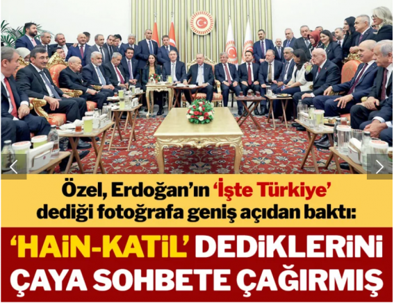 Özel, partisinin ‘AKP’li Cumhurbaşkanı Recep Tayyip Erdoğan tarafından yalnızlaştırılmaya mı çalıştırıldığı’ sorusuna ise şu cevabı verdi: “Kendi atadıklarıyla doldurduğu salonlarda kendini alkışlattıranların ya da Meclis’te bir resepsiyon davetine icabet etme nezaketi gösterenlerle çektirdiği fotoğrafı kendine siyasette meşruiyet diye arayanların haline gerçekten acıyarak ve gülümseyerek bakıyorum. Bugün o salona davet ettiklerinden iki partiyi kendisinden ayrılıp parti kurdu diye hain ilan eden, bayramlarda ziyaret programına almadığını sizlere iletişim yaparak ‘Bu sene de AK Parti’nin bayramlaşma listesinde DEVA ve Gelecek yok’ diyorlardı övünerek. Şimdi CHP onlara ana muhalefet olarak bütün dünyanın önünde öyle demokratik bir şamar attı ki bir anda hain dediklerini çay içmeye, katil dediklerini sohbet etmeye çağırmışlar.”