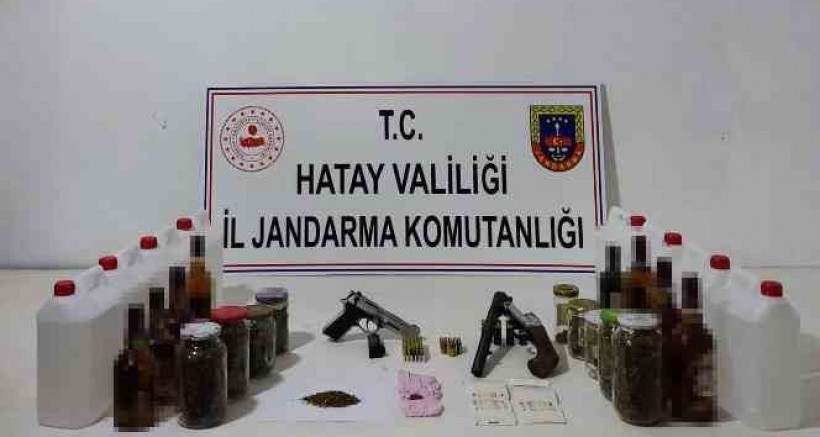 Hatay'ın Dörtyol ilçesinde 3 kilo 925 gram esrar, etil alkol, ruhsatsız silah ve kaçak içki ele geçirildi. 1 kişi gözaltına alındı.