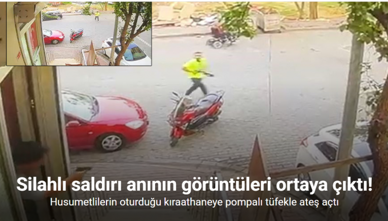 Esenyurt ilçesi Güzelyurt Mahallesinde 9 Ağustos 2025 tarihinde bir şahıs yanında getirdiği pompalı tüfekle husumetlilerin oturduğu kıraathaneye ateş açmıştı. Mermiler kıraathaneye ispat ederken şans eseri olayda ölen ya da yaralanan olmamıştı. Bugün de silahlı saldırı anının güvenlik kamera görüntüsü ortaya çıktı. Görüntüde, kıraathaneye elinde pompalı silahla gelen şahıs ateş ettiği ve içeriden birinin de tabanca ile karşılık verdiği görülüyor. İçeriden elinde silahla çıkan adam şahsın arkasından silah doğrulttuğu görülüyor. Bunun üzerine kaçan şahsın pompalı tüfek ile tekrar geldiği görüntülerde yer alıyor.