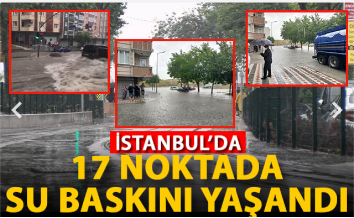 Hafta başından itibaren serin ve yağışlı havanın etkisi altında olan İstanbul’da, bugün öğlen 12.00’den itibaren sağanak yağış başladı. Avrupa Yakası’nda başlayan yağış, Anadolu Yakası istikametinde ilerleyerek il genelinde kuvvetli sağanak ve gök gürültülü sağanak yağmur geçişleri şeklinde devam etti. Yağışlar nedeniyle, kentin bazı noktalarında, alt geçitlerinde, ana arterlerinde göllenmeler yaşandı. İBB su baskınlarına 2 bin 500 personelle müdahale edildiğini açıkladı.