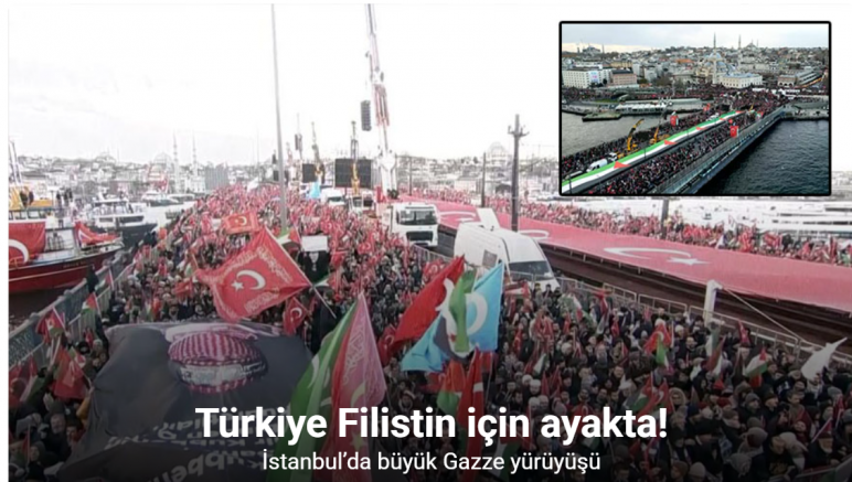 İstanbul'da "Sinmiyoruz, susmuyoruz Filistin'i unutmuyoruz" sloganıyla yeni yılın ilk sabahında Galata Köprüsü'nde düzenlenen mitinge binlerce vatandaş akın etti. Tarihi mitingte konuşan TÜGVA Genel Başkanı İbrahim Beşinci, "Bugün, burada yüz binler var. Bu soykırıma karşı dimdik duran onurlu bir millet var. Mazlumların duası, şehitlerimizin mirası var. Bugün, burada; Çifte standartlı açıklamalara, geciktirilmiş kınamalara, kayıtsızlığa, vicdansızlığa karşı güçlü bir duruş var. Bugün, burada; Suskunluğun duvarı yıkılıyor. Alışkanlığın zinciri kırılıyor. Tarihe vicdan kaydı düşülüyor. Ey Batı'nın Kukla Liderleri; 7 Ekim'den bugüne, tam 27 aydır Gazze topraklarına; 210.000 bin ton bomba atıldı.70.000 sivil hayatını kaybetti. 2.600 ailenin tamamı nüfustan silindi. 5.000 aileden geriye sadece 1 kişi kaldı. 45.000 Filistinli ampute oldu. 12.000 Filistinli tutuklandı. Yani tüm dünyanın gözleri önünde bir halk haritadan değil hayattan silindi. Ey Birleşmiş Milletler; 2.Dünya sonrasında küresel barışın teminatı olarak kurulmamış mıydınız? Küresel adaleti tesis etmeyecek miydiniz? Dil-din-ırk-herkes eşit değil miydi? Yaşamak, hürriyet ve kişi emniyeti her ferdin hakkı olmayacak mıydı? Bütün insanlar hür, haysiyet ve haklar bakımından eşit doğmamış mıydı? Buradan tüm dünyaya sesleniyorum; İnsan hakları beyannamesi ile ortaya atılan maddelerin tamamı Gazze topraklarında ihlal edilmedi mi? Duymadınız mı? Görmediniz mi? Buradan Gazze'deki kardeşlerimize, orada mücadele eden mücahitlerimize ölüm topraklarında yaşayan kardeşlerimize sesleniyoruz. Sen üzülme! Alışmadık, yılmadık, usanmadık. Biz sizden hiç kopmadık. Sinmedik-susmadık. Biz sizden hiç uzaklaşmadık. Duman rengine mahkûm edilmiş bu dünyaya; Medeniyeti- İnsaniyeti- Hürriyeti- Hakkaniyeti biz getireceğiz. Bunu biz yapacağız. Biz başaracağız. Toprağa girene kadar durmayacağız. Zalimlerden olmayacağız. Sizleri asla unutmayacağız. Ve hiç şüpheniz olmasın ki; Bir gün gelecek, bir gün kalacak bu millet yürüyecek bir sabah kardan aydınlık gelecek" dedi.