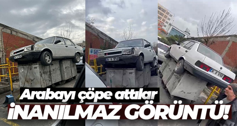 Başakşehir İkitelli OSB Mahallesi'nde bulunan bir sanayi sitesine sabah saatlerinde gelen vatandaşlar, çöp konteynerlerinin üstüne bırakılmış arabayı görünce şoke oldu. Ne olduğunu anlayamayan vatandaşlar şaşkınlıklarını gizleyemezken, kim tarafından ve neden bırakıldığını anlamaya çalıştı. Yaşanan o ilginç anlar ise kameralara yansıdı.
