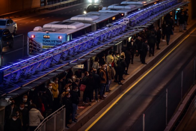 İstanbul`da kademeli normalleşme sürecinden sonra en yüksek vakası dün akşam açıklandı ve kabine toplantısının ardından da Cumhurbaşkanı Recep Tayyip Erdoğan tarafından yeni kısıtlamalar duyuruldu.Tam da bu saatler de İstanbul`da iş çıkışında eve gitmeye çalışan vatandaşların yaşadığı yoğunluk ve toplu taşıma araçlarındaki görüntüler bu kadarına da pes dedirtti.İstanbul`da toplu taşımanın en önemli parçalarından biri olan metrobüslerde iş çıkış saatinde yoğunluk yaşandı. Duraklarının giriş çıkışlarında kalabalık dikkat çekerken, metrobüslere binmek isteyen İstanbullular da adeta birbirleriyle yarıştı.Zaman zaman yaşanan yoğunluk nedeniyle metrobüs araçlarının kapılarını kapatmakta zorluk çektiği görüldü. Metrobüs araçlarının içinin ise tıka basa dolu olduğu görüldü.Mahmutbey Caddesinde çekilen görüntüde bir otobüs içerisinde vatandaşların tıklım tıklım olan otobüste seyahat etmeleri kameralara yansıdı.Bahçelievler Kemal Sunal Caddesi üzerinde bulunan minibüslerde de tıka basa dolu minibüslerin seyrettiği görüldü.