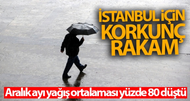 Son aylarda beklenen yağmurların yağmaması sonucu İstanbul'daki barajlar yaklaşık yüzde 80 oranında boşaldı. Barajların bugün itibariyle doluluk oranı yüzde 20.29 oldu. İBB yetkililerin yaptığı acıkmaya göre İstanbul'un Aralık ayı yağış ortalaması yüzde 80 oranında düşerek metrekareye 21 kilogram yağış düştü. Öte yandan yapılan açıklamada İstanbul'da hava sıcaklıklarının 13 Ocak'a kadar mevsim normallerinin 2-4 derece üzerinde seyretmesinin beklendiği bildirildi.