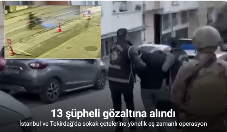 Edinilen bilgiye göre, İstanbul Emniyet Müdürlüğü Organize Suçlarla Mücadele Şube Müdürlüğü ekipleri, Bakırköy Cumhuriyet Başsavcılığı koordinesinde yeni nesil suç çetelerine yönelik geniş çaplı bir çalışma gerçekleştirdi. İstanbul başta olmak üzere ülke genelinde ve uluslararası alanda suç faaliyetlerinde bulunan, hakkında kırmızı bülten kararı olan ve yurt dışında olduğu saptanan firari bir çete elebaşı tarafından yönlendirilen kişilere yönelik İstanbul ve Tekirdağ’da eş zamanlı operasyon düzenlendi. Baskınlarda 13 şüpheli yakalanarak gözaltına alındı.