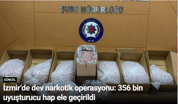 İzmir’in Buca ilçesinde düzenlenen narkotik operasyonunda 356 bin uyuşturucu hap ele geçirildi. Operasyonda gözaltına alınan 3 şüpheli çıkarıldıkları mahkemece tutuklandı.