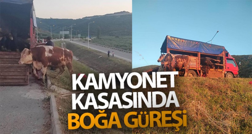 Olay, İznik - Yenişehir yolunun 4. kilometresinde yaşandı. Seyir halindeki kamyonetin kasasında kavgaya tutuşan 7 boğa ortalığı birbirine kattı. Boğaların tepişmesine dayanamayan kamyonetin kasasının kapakları kırılınca boğalar dışarıya çıkmak istedi.