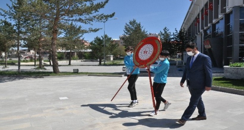 Hükümet Konağı önünde düzenlenen tören, Atatürk Anıtına Gençlik Hizmetleri ve Spor İl Müdürlüğü'nün çelenginin konulmasıyla başladı.