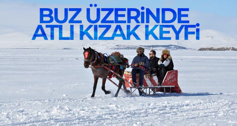7/13Yüzeyi tamamen buz tutan ve üzeri karla kaplı olan göl, adeta geniş bir ovayı andırıyor. Kars'a kent dışından gelen misafirler, Çıldır Gölü`nün simgesi haline gelen atlı kızaklara binerek gezinti yapıyor. Göl üzerinde gönüllerince eğlenen misafirler, sarı balık yedikten sonra bölgeden ayrılıyor.