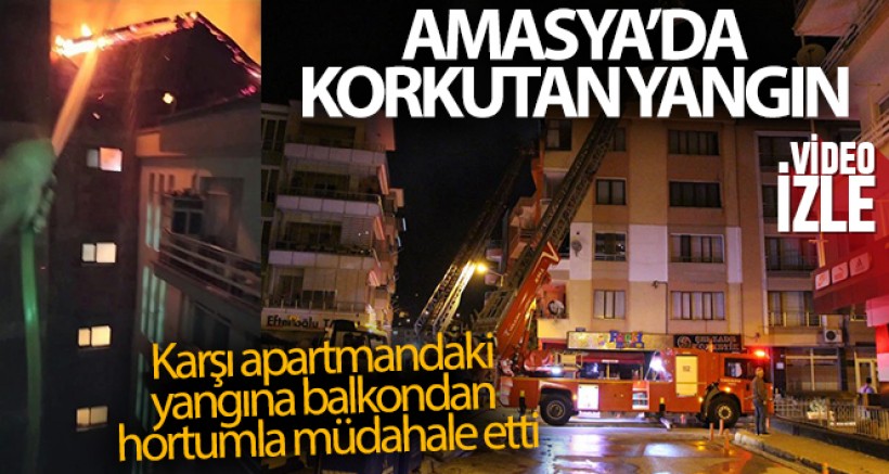 Edinilen bilgiye göre, Hacı İlyas Mahallesi Yörgüçpaşa Sokaktaki 5 katlı apartmanın en üstündeki dairede yangın çıktı. Kısa sürede çatıyı saran alevlere Amasya Belediyesi itfaiye ekipleri müdahale etti. O sırada karşı apartmanda yaşayan kaynak ustası Abdullah Demirel de bahçe hortumunu musluğa takıp tazyikli suyu yanan binaya tuttu.