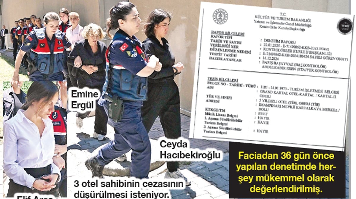 Kültür ve Turizm Bakanlığı’nın 78 kişinin can verdiği Grand Kartal Oteli’nde 16 Aralık 2024’te yaptığı denetim raporu ortaya çıktı. 21 Ocak 2025’teki yangından bir gün sonra ‘yazılan’ ve kamuoyundan saklanan rapor, soruşturma dosyasına girdi. Alican Uludağ’ın haberine göre: ciddi eksikliklere ilişkin herhangi bir tespit yer almaması dikkat çekti.