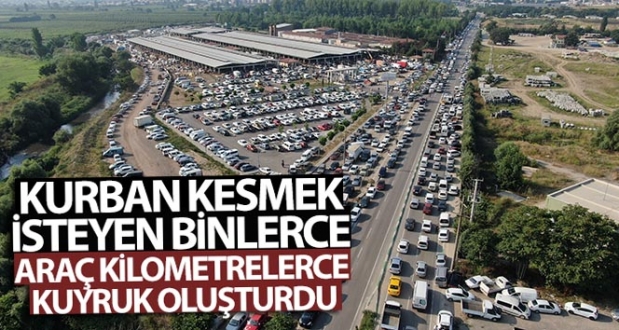 3/8Kurban satışlarının devam ettiği Osmangazi Belediyesi Hijyenik Kurban Tesisine giderek ibadetlerini yerine getirmek isteyen vatandaşlar kilometrelerce araç kuyruğu oluşturdu.