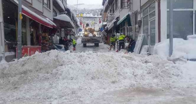 Kastamonu'nun Küre ilçesinde etkili olan kar yağışına karşı, ekipler yol açma çalışmalarına başladı.