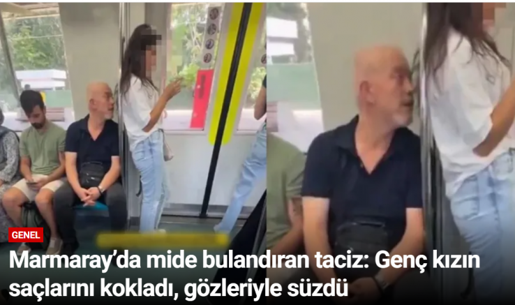 İstanbul Marmaray’da kaydedilen bir taciz olayı sosyal medyada büyük infial yarattı. Görüntülerde bir erkek yolcu, ayakta duran genç bir kızın saçlarını koklarken ve onu baştan aşağı süzerken görüntülendi. Taciz anları, başka bir yolcu tarafından cep telefonu kamerasıyla saniye saniye kaydedildi.