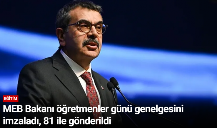 Milli Eğitim Bakanı Yusuf Tekin’in imzasını taşıyan "24 Kasım Öğretmenler Günü" konulu genelge 81 ilin valiliklerine gönderildi. Genelgede öğretmenlik mesleğinin toplumsal rolüne ve eğitimdeki önemine dikkat çekildi.