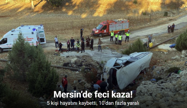 Kaza sabah saatlerinde ilçeye bağlı Avradı Yaylası olarak bilinen Erdemli Güzeloluk Mahallesi yolunda, Kargagediği mevkii yakınlarında meydana geldi. Alınan bilgiye göre, Cemal K. idaresindeki 33 VLP 55 plakalı minibüs ilçe merkezine doğru seyrettiği sırada sürücüsünün direksiyon hakimiyetini kaybetmesi ile yaklaşık 3 metrelik şarampole uçtu. Kazayı görenlerin ihbarı üzerine olay yerine itfaiye, sağlık ve jandarma ekipleri sevk edildi. Minibüste sıkışan yaralılar çıkartılarak ambulanslarla hastanelere gönderildi. Olay yerinde yapılan incelemede 5 işçinin öldüğü, 14 işçinin de yaralandığı anlaşıldı. Kurtarma çalışmaları sürüyor.