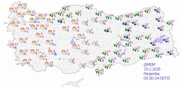Afyonkarahisar 8°C, Aydın 15°C, İzmir 17°C, Muğla 14°C.