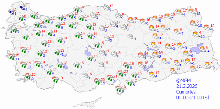 Çok bulutlu, sabah saatlerinde yağmur; iç kesimlerde karla karışık yağmur bekleniyor.