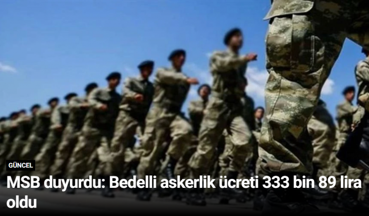 Milli Savunma Bakanlığı (MSB), 2026 yılında uygulanacak bedelli askerlik ücretini açıkladı. Bakanlık tarafından yapılan duyuruya göre, bedelli askerlik tutarı 333 bin 89 lira 4 kuruş olarak belirlendi.
