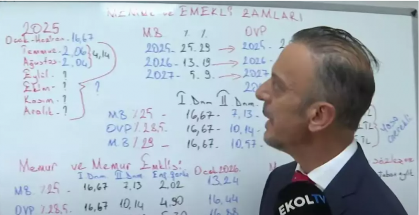 Ekol TV’ye konuşan Sosyal Güvenlik Müşaviri Emin Yılmaz, yeni hesaplamaları aktardı. Yılmaz, “Çok merak ediliyor; yılbaşında memurlarımız ve emeklilerimiz ne kadar zam alacak? Şu anda net hesaplama yapabiliyoruz” dedi.