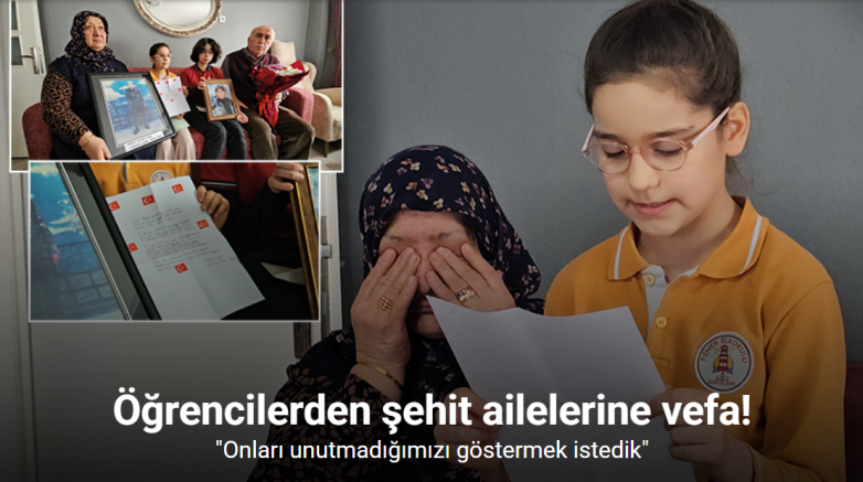 Gazi Mustafa Kemal Ortaokulu 8. sınıf öğrencisi Eylül Mina Ekmekci ve Fener İlkokulu 3. sınıf öğrencisi Feyzanur Doğan, 1999’da Van’ın Gürpınar ilçesinde teröristlerle çıkan çatışmada şehit olan Jandarma Komando Onbaşı Rıfat Köktürk’ün annesi Hayriye ile babası Cihan Köktürk’ü ziyaret etti. Aileye çiçek takdim eden öğrenciler, mektupları okuyarak vatan için evlatlarını feda eden şehit ailesine minnet duygularını dile getirdi. Öğrencileri karşısında gören şehit babası Cihan Köktürk gözyaşlarına hakim olamadı.